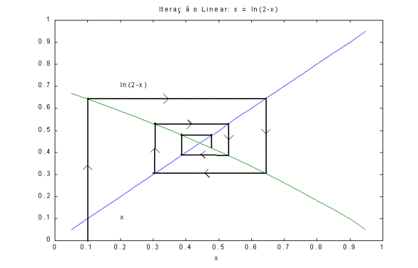 convergência, foi feita a transformação x = ln(2-x) = g1(x). A